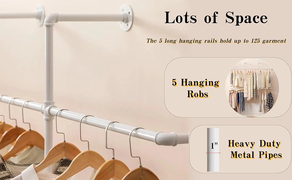- Heavy Duty Clothes Rack: The commercial wall clothes rack is made of high-quality iron pipes with solid hardness, sturdy and durable, and not easy to break. The wall clothing rack is coated with decently painted to enhance corrosion protection and avoid rust accumulation.